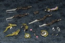The Hexa Gear Motor Punisher is mainly used for security, maintenance and reconnaissance missions, and features superior maneuverability, cruise distance and flight time. Â Its main weapon is the Biting Scissors, as well as an automatic grenade launcher and grapple blade. Â It’s about 22cm long when assembled, and it can be ridden by up to 2 Governors. Molded in gray, dark green and silvery-gray plastic.Â